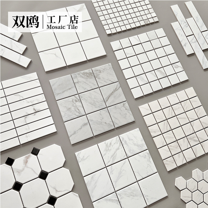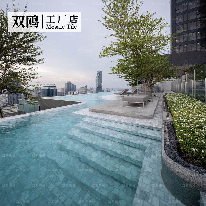 双鸥陶瓷网红白色大理石游泳池仿石材马赛克瓷砖民宿酒店水池浴室
