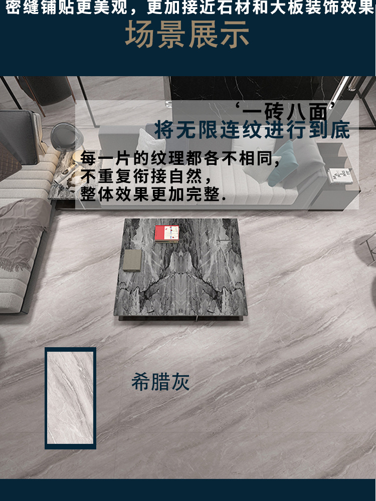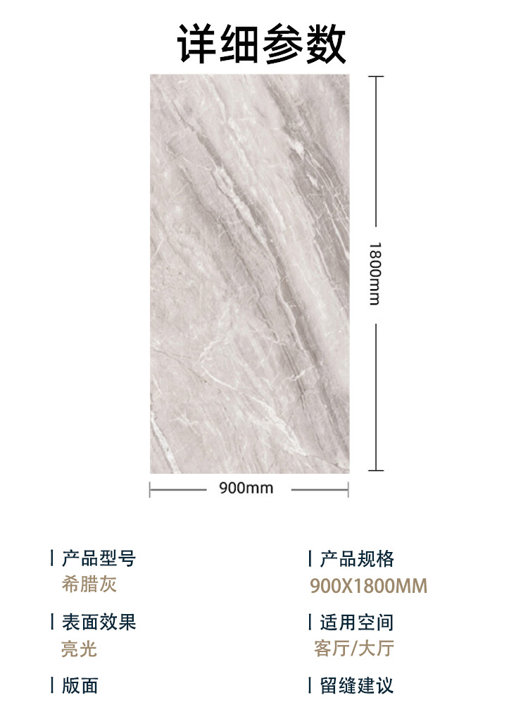 胜居 简约仿大理石亮光瓷砖900x1800客厅密贴连纹背景墙希腊灰